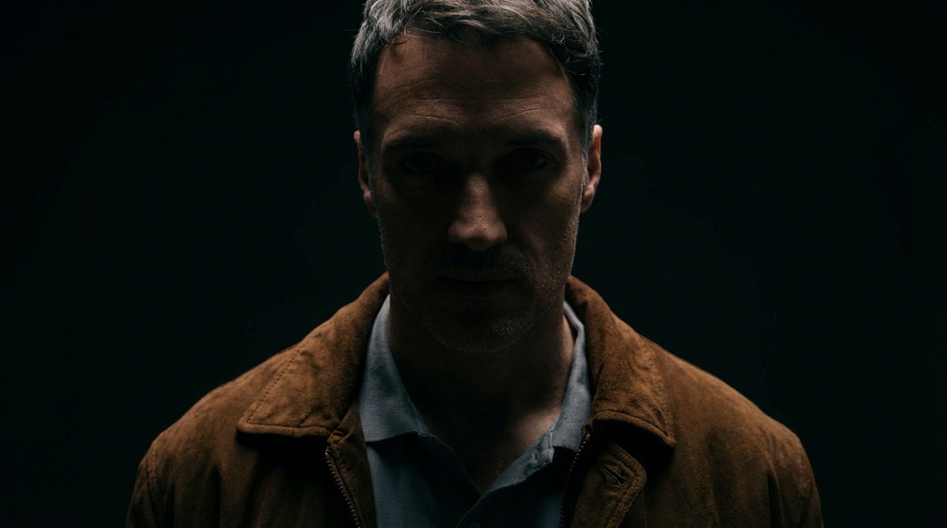 `A cinematic, moody medium shot of a handsome, exhausted young Greek doctor (Pavlos) in his 30s, standing on a rocky, desolate Mediterranean island shore at twilight. He is wearing a slightly unbuttoned, faded linen shirt. In the background, dark, ominous waves crash against the rocks, and a faint silhouette of an old, abandoned stone house is visible. The atmosphere is tense, mysterious, and melancholic, with cold blue and dramatic shadow lighting reflecting the dark secrets and pollution of the island. High detail, 8k, photorealistic.`